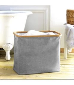 Casâme Paniers Et Corbeilles Panier à Linge Pliable Cadre Bambou Coloris Gris