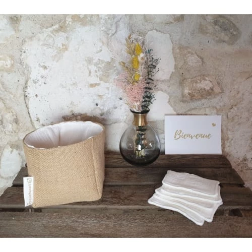 Cette petite bannette est robuste et se tient parfaitement grâce à la toile de jute 100% coton. Une délicate surpiqûre en fil lurex doré pour une belle finition.
