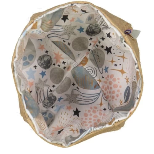 Cette petite bannette est robuste et se tient parfaitement grâce à la toile de jute 100% coton. Une délicate surpiqûre en fil lurex doré pour une belle finition.
