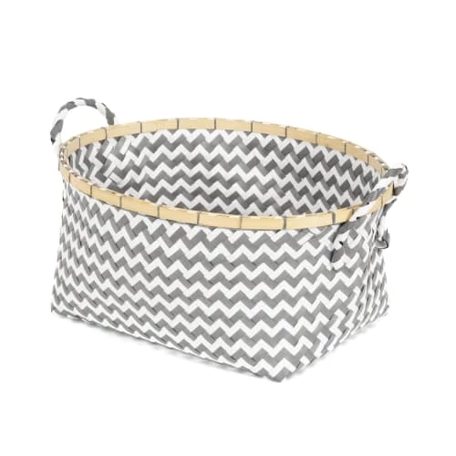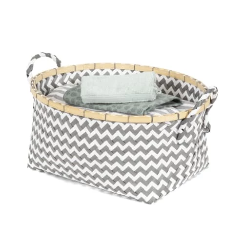 Mobili Rebecca Paniers Et Corbeilles Panier à Linge Avec Couvercle En Bambou Et Mdf Blanc Et Marron