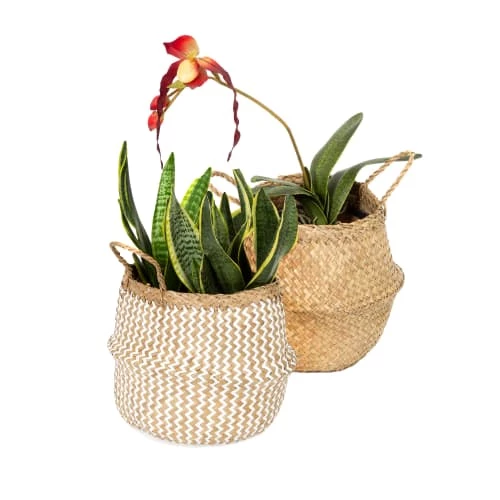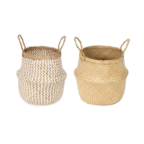 Maisons Du Monde Paniers Et Corbeilles Panié En Fibre De Maïs Et Fibre Végétale Beige – Lot De 2