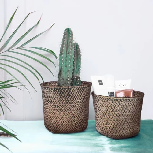 Maisons Du Monde Paniers Et Corbeilles Panier En Jonc De Mer Vert Et Beige