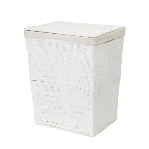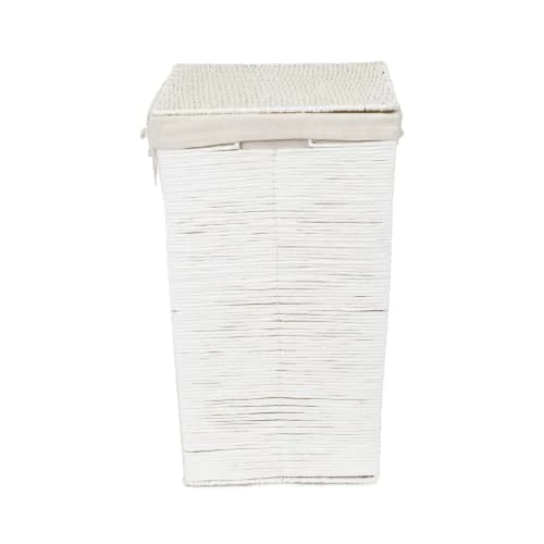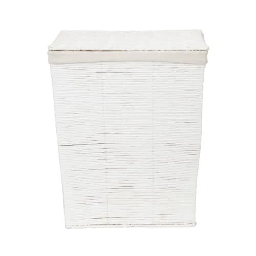 Voilà un panier à linge de bonnes dimensions pour regrouper le linge de toute la famille. Réalisé en tresses de papier blanc, il est renforcé par une armature métallique invisible, ce qui le rend stable et solide. Sa housse en coton amovible, lavable en machine, évite au linge de s’accrocher dans le tressage. Pratique, le couvercle permet de cacher le linge sale entre deux lavages. Neutre et classique, coordonné au panier de rangement Kimo, ce panier trouvera sa place quel que soit le style de votre intérieur, dans la chambre, la salle de bain ou la buanderie. Confectionné à la main, chaque panier est unique. De légères variations peuvent apparaître, c’est une caractéristique de la fibre naturelle, ce qui fait le charme et la beauté de ce panier. Dimensions 41 X 31 X H.50 cm. Les paniers… C’est la plus jolie façon de ranger ! Naturels ou colorés, ils apportent la touche de fantaisie qui fait twister la déco. Si vous avez la place, associez plusieurs paniers à linge afin de faciliter le tri du linge par catégorie. Quelle que soit la pièce, nous vous recommandons de multiplier les paniers d’un même modèle : l’effet visuel et l’impression d’organisation seront décuplés. Vous pouvez aussi juxtaposer plusieurs paniers de la même teinte ou de la même texture et les coordonner à l’ambiance générale de la pièce que vous rangez. Parce que l’harmonie des couleurs participe aussi au sentiment d’ordre et de sérénité.