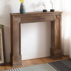 Mobili Rebecca Accessoires De Cheminée Manteau De Cheminée Décoratif 105x21x100 En Paulownia Marron