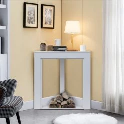 Mobili Rebecca Accessoires De Cheminée Manteau De Cheminée D’angle 90x45x100 Cm En Mdf Blanc