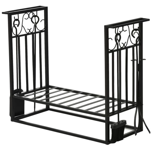 – Equipement complet : étagère et 4 accessoires fournis : pelle, balai, tisonnier et pince