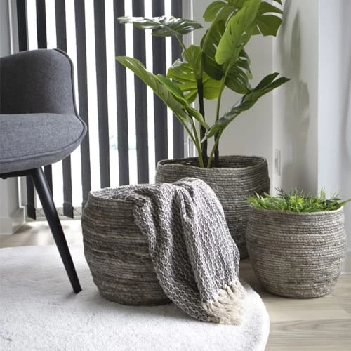 Maisons Du Monde Paniers Et Corbeilles Panié En Fibre De Maïs Et Fibre Végétale Beige – Lot De 2