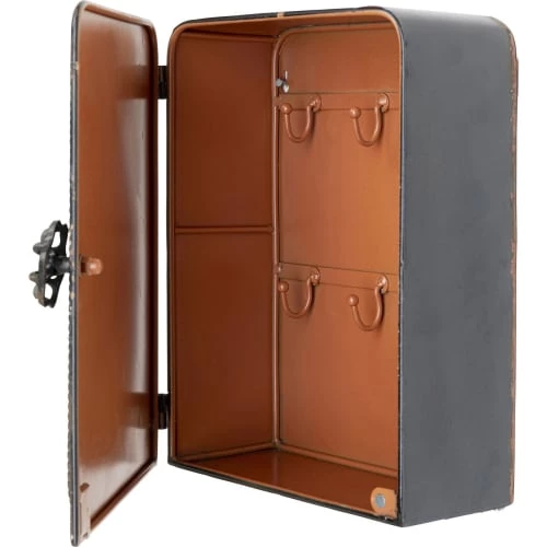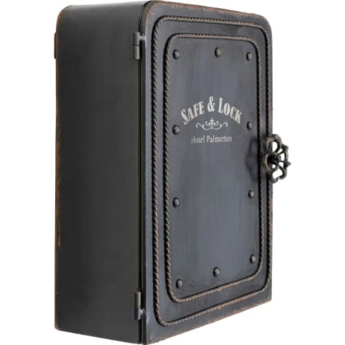 Ne perdez plus vos clés ! Pour garder vos clés à portée de main, cette armoire est idéale. En acier à la finition noir mat vieillie, elle s’inscrit dans un style industriel. Parfaite dans entrée, cette boîte peut être associée avec des matières brutes comme du bois par exemple. Dotée de 6 crochets, elle permet de ranger une multitude de trousseaux, ces derniers seront protégés par une porte aimantée, un véritable coffre-fort !