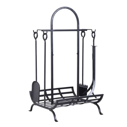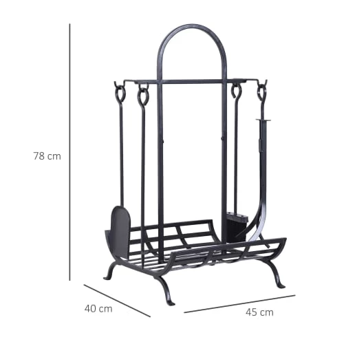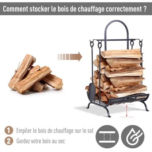 – Equipement complet : espace de stockage de votre bois + 4 accessoires fournis : pelle, balai, tisonnier et pince