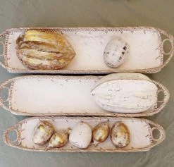 My Bliss Home Paniers Et Corbeilles Bol En Bois Et Rotin Rectangulaire L47 X L10 X H8 Cm