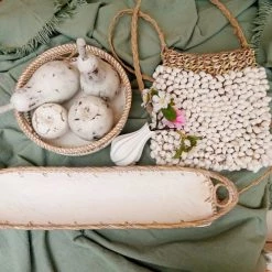 My Bliss Home Paniers Et Corbeilles Bol En Bois Et Rotin Rectangulaire L52 X L12 X H9