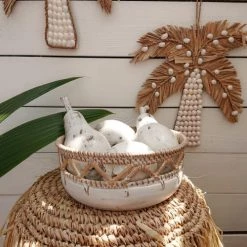 My Bliss Home Paniers Et Corbeilles Bol Rond En Bois Et Rotin D25 X H9 Cm