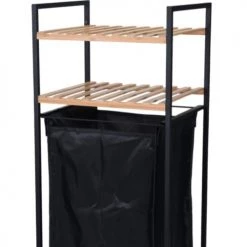 Wadiga Paniers à Linge Panier à Linge Avec étagère Métal Noir Et Bambou – 38x32x89.5cm