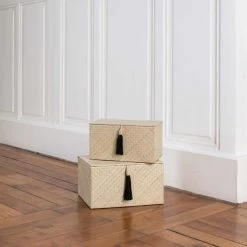Casatera Paniers Et Corbeilles Set De 2 Paniers Ronds En Pandan Beige
