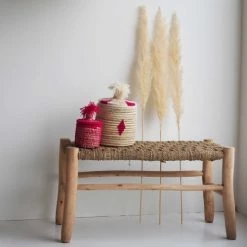 HYDILE Paniers Et Corbeilles Boîte Berbère En Laine Et Osier Motif Rose
