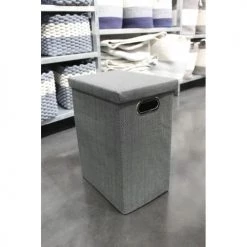 Meubletmoi Paniers Et Corbeilles Corbeille à Linge En Kubu Naturel Tressé Et Tissu Blanc