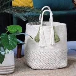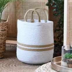 Stof Paniers Et Corbeilles Panier Beige Et Blanc En Jute Et Coton