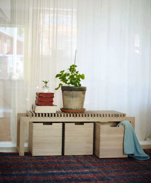 La jolie collection Cutter par Skagerak réinterprète le célèbre design danois des années 50 et 60. Les lignes claires et les formes harmonieuses caractérisent cette collection dont fait partie la boîte de rangement aux roulettes invisibles.
