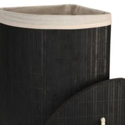 Wadiga Paniers Et Corbeilles Panier à Linge D’angle Noir En Bambou Et Intérieur Amovible En Coton